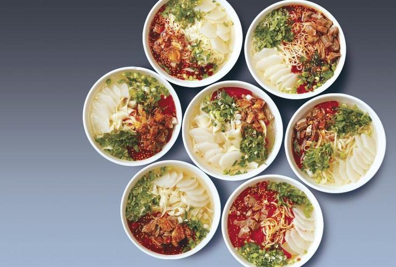 Varias tazas con fideos en un restaurante en Lanzhou, capital de la provincia de Guansu, en el noroeste de China. Los Lamian de carne de res (fideos hechos a mano) son un tipo de fideos chinos originarios de Lanzhou y de amplia popularidad en el país. (Xinhua/Jin Liangkuai)
