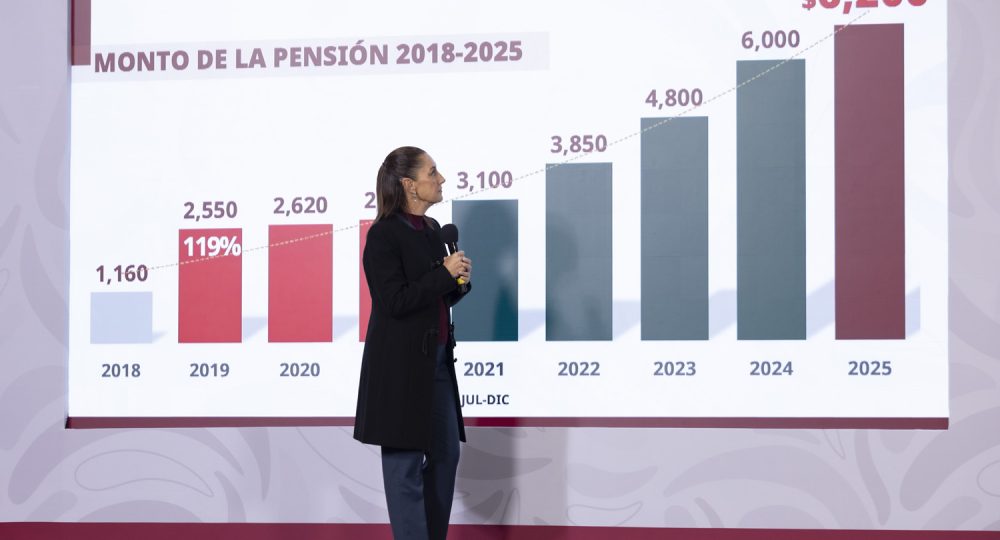 Puntualizó que este crecimiento en la clase media se debe a que en el modelo de la transformación se construye una nueva política social y de derechos, bajo el pensamiento humanista de “por el bien de todos, primeros los pobres”, así como a través de los Programas para el Bienestar que pasarán de una inversión social de 845 mil millones de pesos en 2025 a un billón de pesos en 2026. Aunado a que en materia laboral se ha incrementado el salario mínimo de 197 pesos diarios en 2022 a 260 pesos en 2024. Y a partir del 1 de enero de 2026: de 315.04 pesos diarios a nivel general y de 440.87 pesos diarios en la Zona Libre de la Frontera Norte (ZLFN).