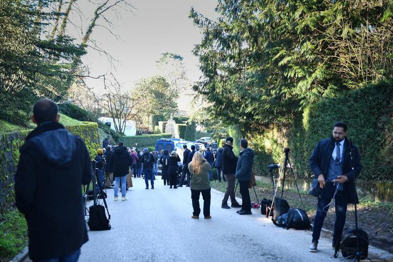 Reporteros de medios de comunicación esperan cerca de la residencia del embajador omaní, en Ginebra, Suiza, el 26 de febrero de 2026. (Xinhua/Lian Yi)