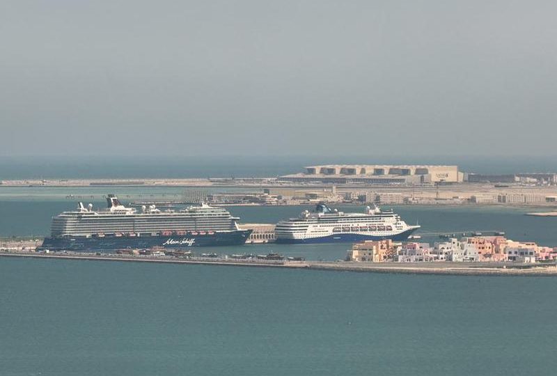 Imagen tomada con un teléfono móvil el 6 de marzo de 2026 del Mein Schiff 5 (i), en Doha, Qatar. (Xinhua/Wang Qiang)