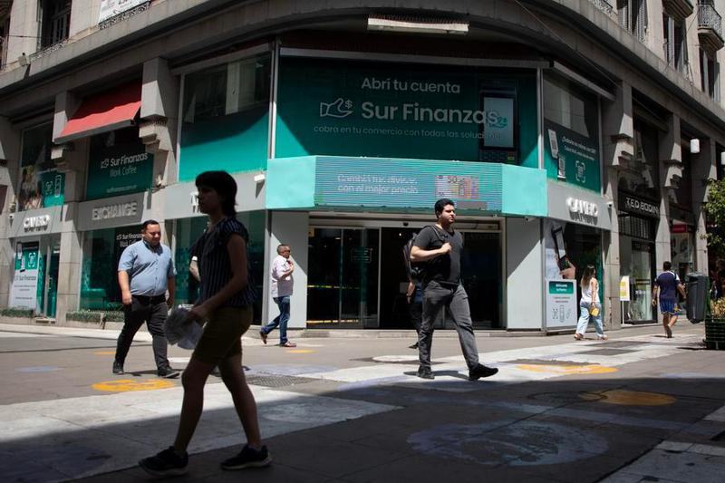 Personas caminan frente a un local de venta de divisas en la ciudad de Buenos Aires, Argentina, el 3 de febrero de 2025. (Xinhua/Martín Zabala)
