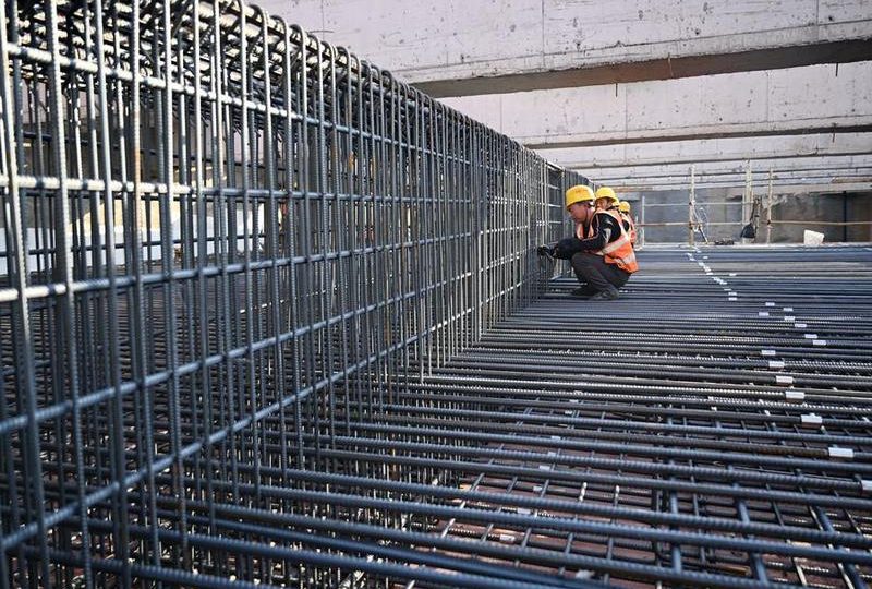 Trabajadores atan barras de acero en un sitio de construcción de la línea 5 del metro de Shijiazhuang, en Shijiazhuang, en la provincia de Hebei, en el norte de China, el 9 de diciembre de 2025. (Xinhua/Mu Yu)