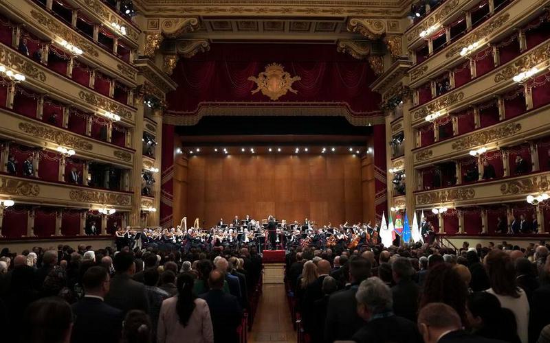 Imagen del 2 de febrero de 2026 de la vista general de la ceremonia de apertura de la Sesión 145 del Comité Olímpico Internacional, en el Teatro La Scala, en Milán, Italia. (Xinhua/Sun Fei)
