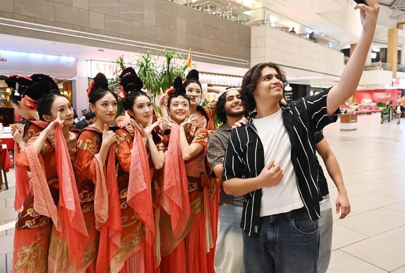 Personas posan para una foto grupal con artistas chinos en la Gobernación de Farwaniya, Kuwait, el 16 de septiembre de 2025. (Xinhua/Asad)
