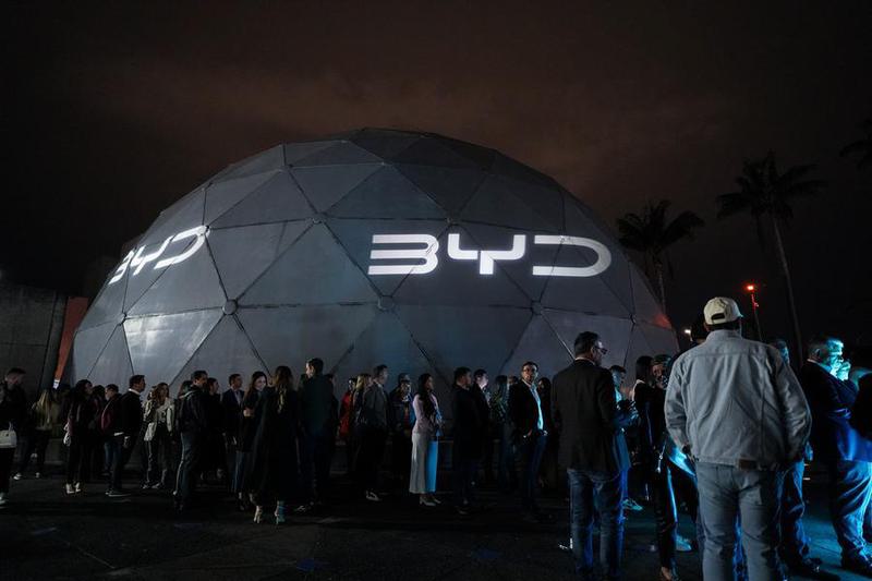 Imagen del 23 de septiembre de 2025 de personas asistiendo al evento de lanzamiento de dos potentes camionetas de la compañía china de tecnología BYD, en Bogotá, capital de Colombia. (Xinhua/Andrés Moreno)