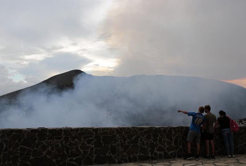 Imagen de archivo del 27 de agosto de 2022 de turistas observando el cráter Santiago del volcán Masaya, en el departamento de Masaya, Nicaragua. (Xinhua/Oswaldo Rivas)