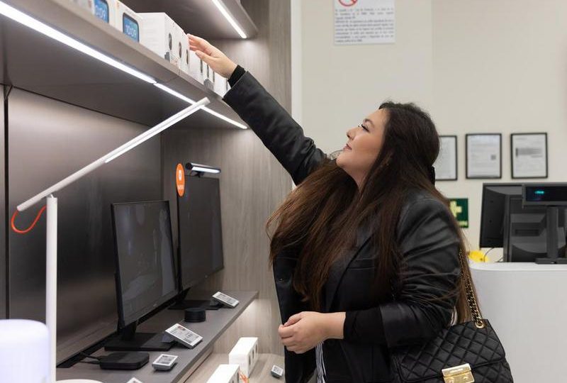 Imagen del 26 de julio de 2024 de Valeria Ramírez revisando una cámara de vigilancia para el hogar en la tienda de la marca china Xiaomi, en la Ciudad de México, capital de México. (Xinhua/Li Mengxin)