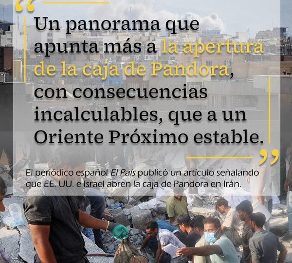 “Un panorama que apunta más a la apertura de la caja de Pandora, con consecuencias incalculables, que a un Oriente Próximo estable”, comentó un articulista en una columna reciente del diario español El País, señalando que Estados Unidos e Israel abren la caja de Pandora en Irán.