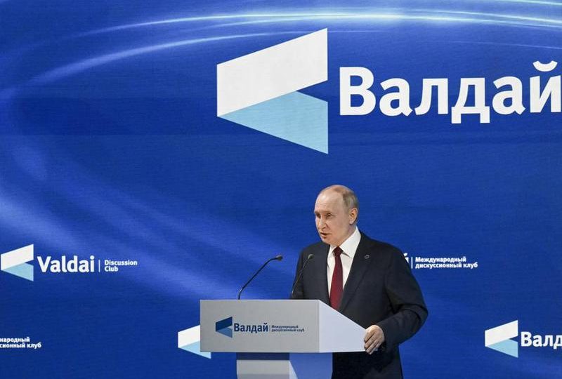 El presidente ruso, Vladimir Putin, habla en la 22ª reunión anual del Club de Debate Internacional Valdai, en Sochi, Rusia, el 3 de octubre de 2025. (Xinhua/Hao Jianwei)