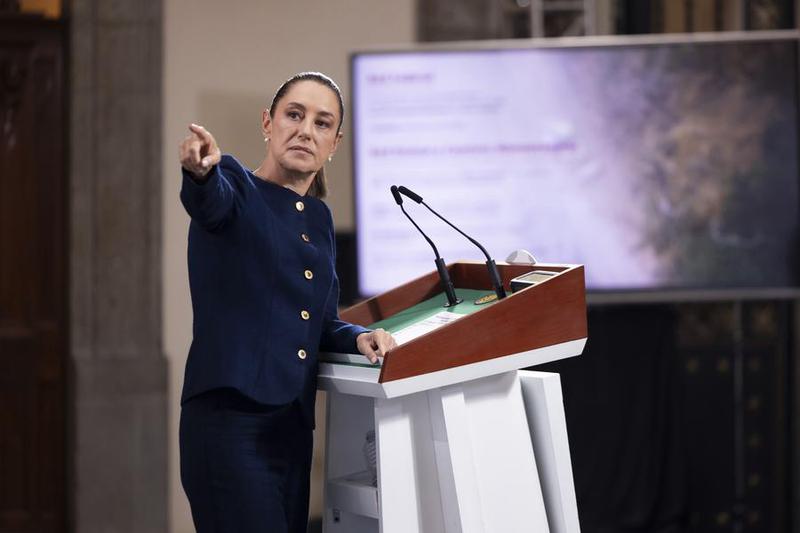 Imagen proveída por la Presidencia de México de la presidenta mexicana, Claudia Sheinbaum, participando durante su conferencia de prensa matutina, en Palacio Nacional, en la Ciudad de México, capital de México, el 20 de octubre de 2025. (Xinhua/Presidencia de México)
