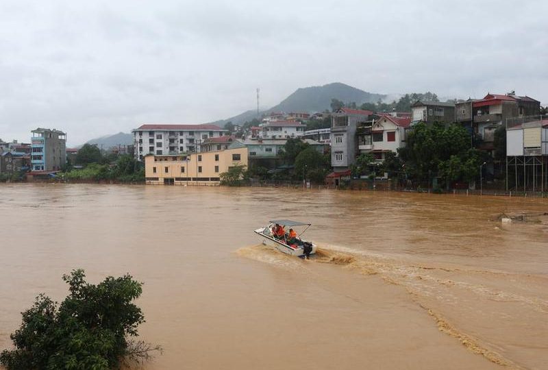 Imagen del 7 de octubre de 2025 de personal de rescate patrullando las áreas inundadas, en la provincia de Cao Bang, Vietnam. (Xinhua/VNA)
