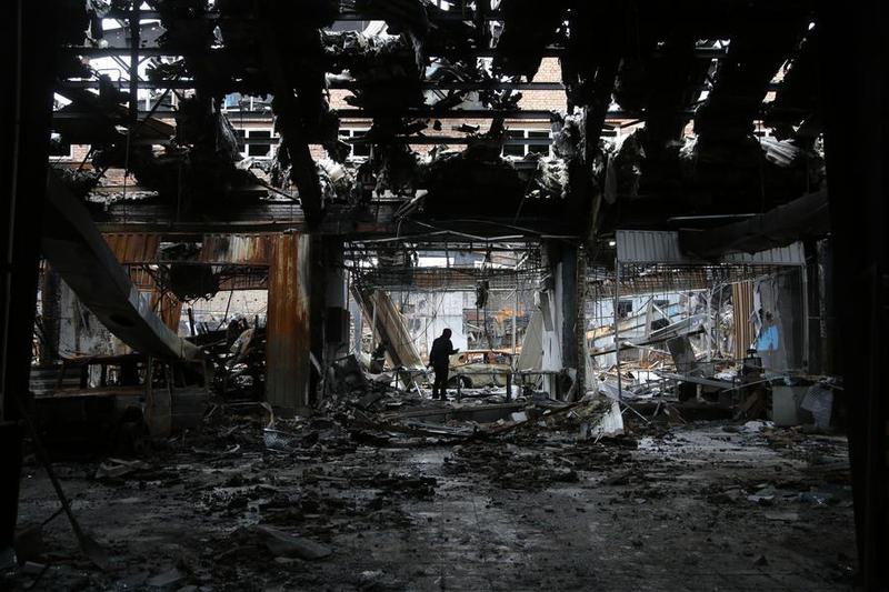 Imagen del 28 de marzo de 2026 de un centro de servicio automotriz que fue golpeado por un ataque con misiles, en el este de Teherán, Irán. (Xinhua)