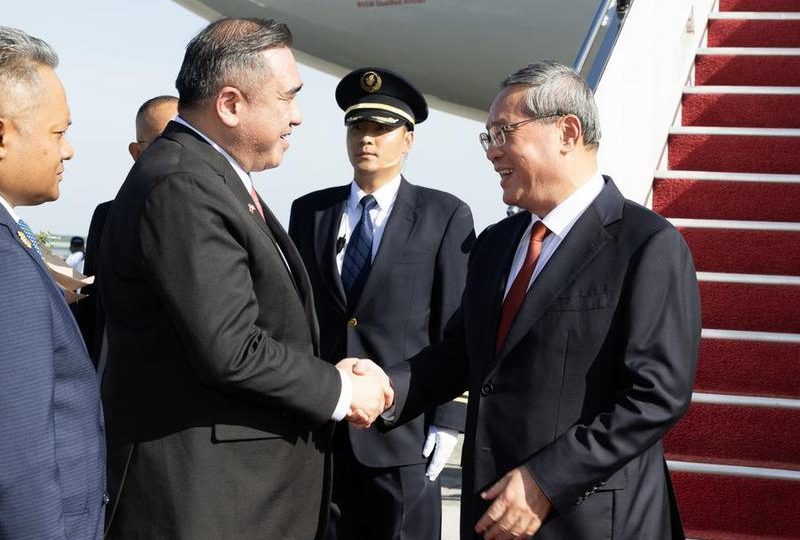 A convite do primeiro-ministro da Malásia, Anwar Ibrahim, cujo país ocupa a presidência rotativa da ASEAN, o primeiro-ministro chinês, Li Qiang, chega ao Aeroporto Internacional de Kuala Lumpur para participar das reuniões de líderes sobre cooperação do Leste Asiático em Kuala Lumpur, na Malásia, em 26 de outubro de 2025. (Xinhua/Huang Jingwen)