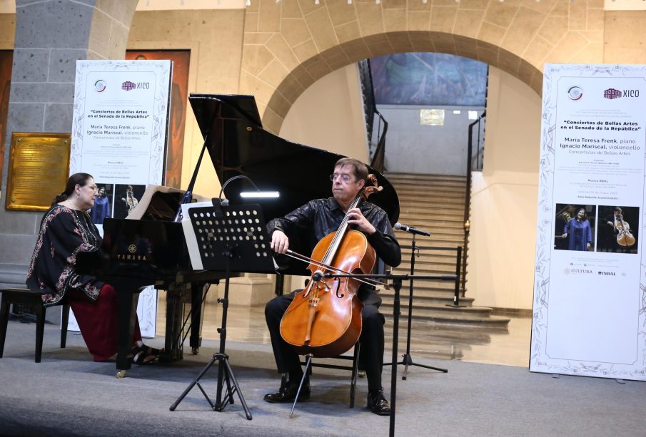 La noche de este viernes 16 de mayo la pianista María Teresa Frenk y el violonchelista Ignacio Mariscal deleitaron a quienes asistieron una nueva edición de los “Conciertos de Bellas Artes en el Senado de la República”, que forma parte de la programación cultural que la Cámara de Senadores ofrece en el espacio llamado “Xico. Senado es Cultura”.